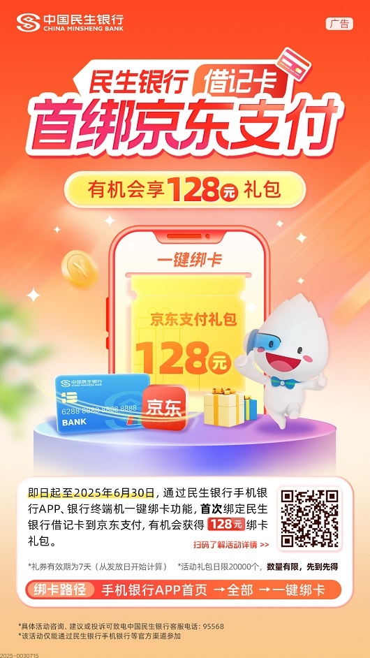 香蕉视频 借记卡首绑京东支付 有机会享128元礼包