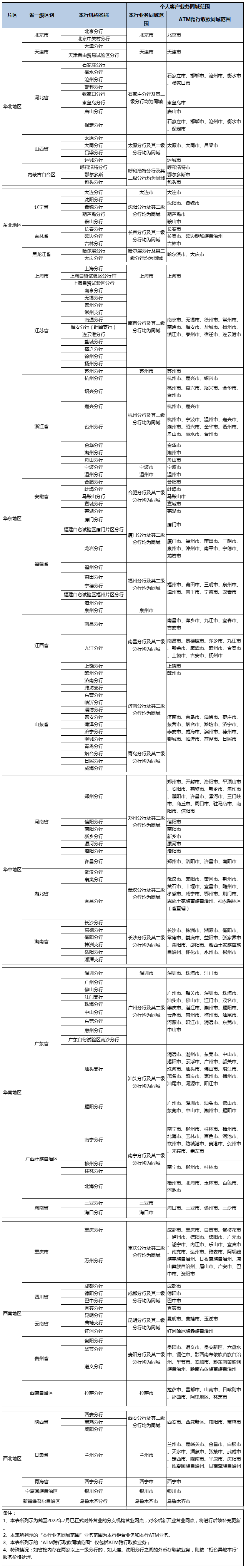 个人客户业务同城范围